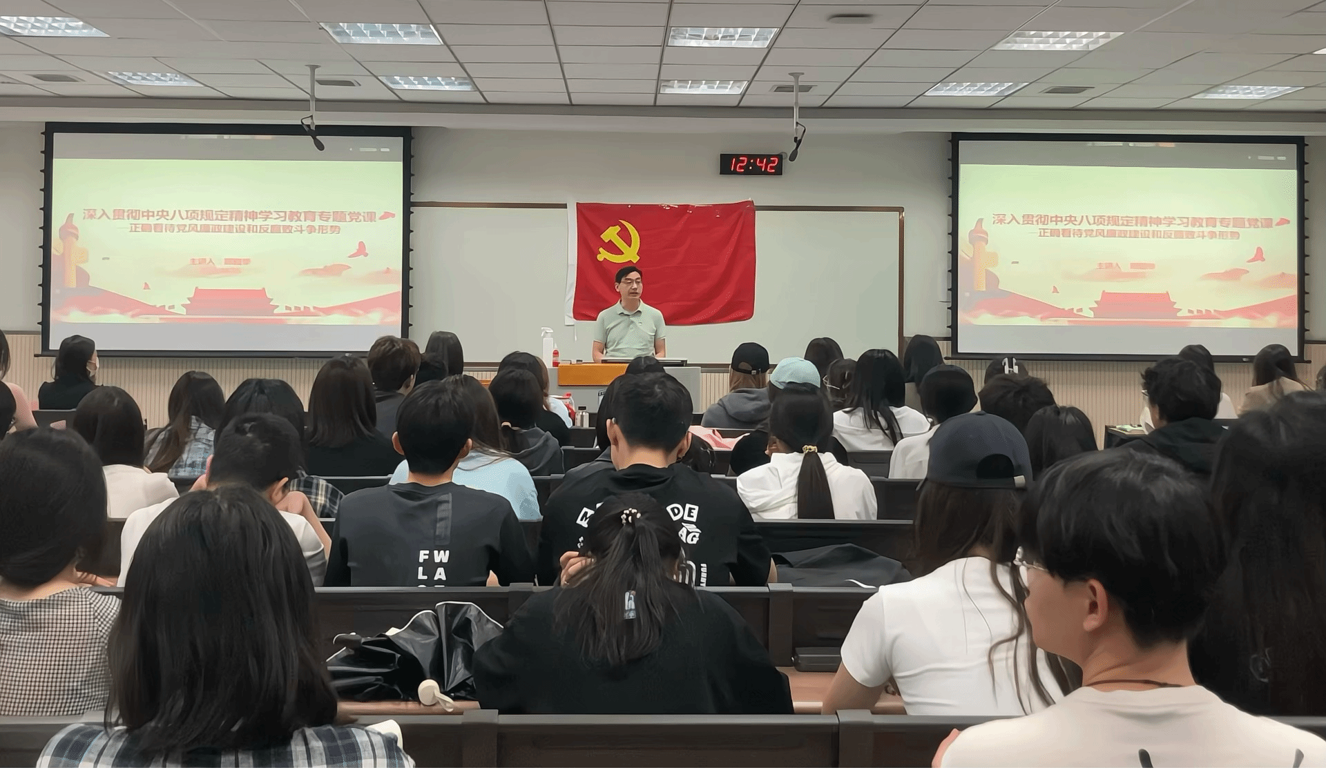 会议要求,全体党员一是要筑牢思想堤坝。深刻认识作风建设的长期性、复杂性,从政治高度把握中央八项规定精神实质,自觉抵制 “微腐败” 和不正之风。二是要践行责任担当。教师党员要牢记“为党育人、为国育才” 使命,将廉洁自律融入教育教学全过程,以清风正气培育时代新人;学生党员要锤炼品德修为,在学业实践中弘扬务实作风,争做堪当大任的栋梁之才。三是要强化示范引领。支部书记要带头遵守党纪党规,加强对师生党员的日常教育监督,把纪律要求转化为行动自觉,以优良作风为学校“双一流”建设和学院中心工作高质量发展贡献力量。(图/文:唐歌、姚庆;审核:冯达)