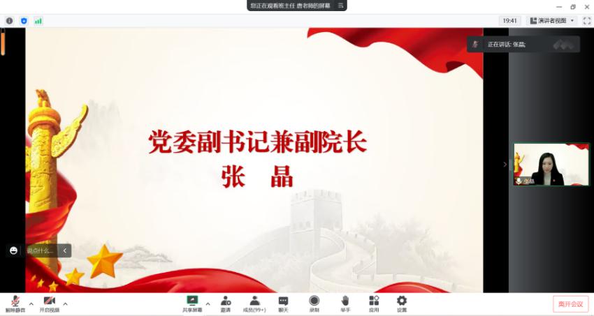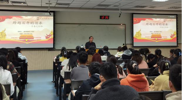 院长周龙为全体学员讲授《跨越百年的传承--青春之信仰》专题党课,以革命初期、新中国建设初期和新时代三个不同历史时期的青年代表陈毅安、邓稼先及杜富国先进事迹为例,全面阐述了三位代表坚定理想信念、报效祖国的感人事迹,教育引导全体学员,脚踏实地、砥砺前行,用青春致敬信仰,用信仰彰显青春,做担当民族复兴大任的时代新人。