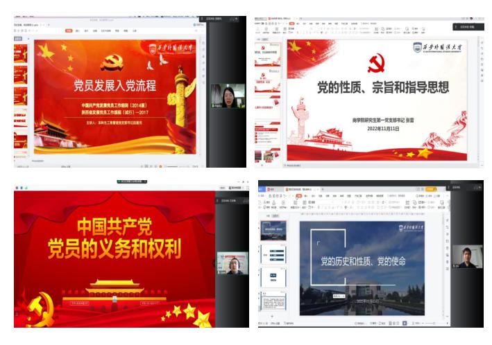 学生党支部书记田星河、张雷、艾勃成、王岳分别进行初级党课讲授,内容涉及党员发展入党流程,党的性质、宗旨和指导思想,党员的义务和权利,党的历史和使命等专题,帮助全体学员全面、系统地掌握了党的理论知识,提高全体学员的政治素养和党性修养。