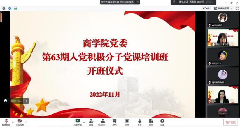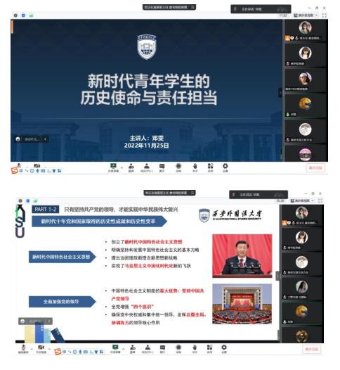 在影像教学环节,党委秘书唐歌组织师生积极分子观看《二十大报告解读|非凡成就 伟大变革》《二十大报告解读|使命在肩 勇毅前行》《党课开奖啦|学习贯彻习近平外交思想 塑造新时代大国外交风范》等内容,并开展交流研讨。通过影像教学,全体学员加深了对时代责任、历史使命的理解,深刻领悟了在新时代、新征程中,当代青年要坚定理想信念,肩负使命、勇往直前,努力成长为堪当民族复兴重任的时代新人。