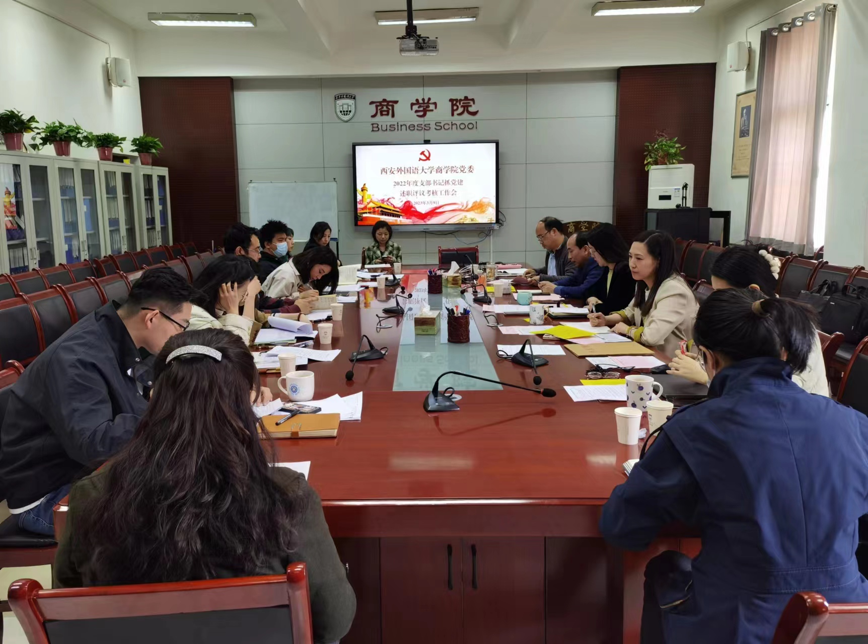 2023年3月9日,学院党委于G210会议室召开2022年度党支部书记抓党建述职评议考核工作会。学院党委委员、各党支部书记、师生代表参加会议。会议由党委书记邓雯主持。