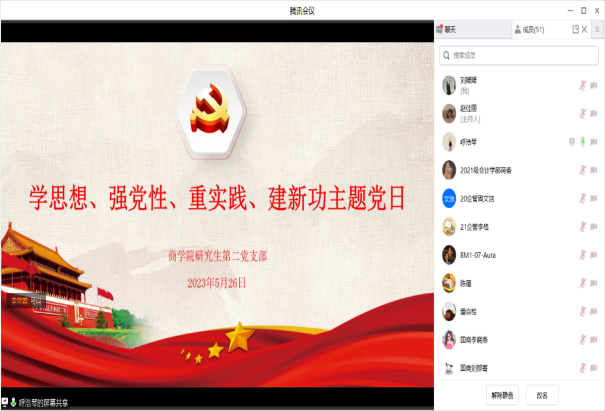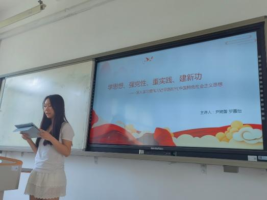 本科生商务英语党支部学生党员罗嘉怡同志谈到,我们要自觉践行习近平新时代中国特色社会主义思想,从中汲取奋发进取的智慧和力量。作为新时代青年大学生,要找准新时代的历史方位,明确自己的历史使命,坚持用习近平新时代中国特色社会主义思想武装自己,自觉承担起建设社会主义强国的历史使命,在实现中国梦的生动实践中放飞青春梦想。