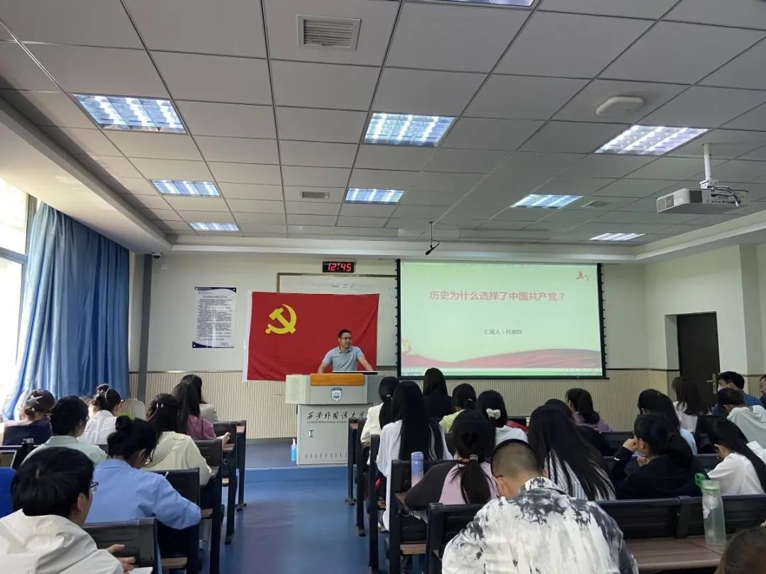 5月7日,组织部副部长杜刚跃为全体学员讲授《历史为什么选择了中国共产党?》专题党课。他围绕党的百年历史伟业,用深厚的理论阐释、生动的实例分析和详实的数据解读,为全体学员深入阐述了中国共产党领导是中国特色社会主义最本质的特征,坚持党的领导是历史和人民的选择,也是实现中华民族伟大复兴的根本保证。他强调,全体学员要端正入党动机,认清时代所赋予的责任和使命,坚定理想信念、勇于责任担当,不忘初心,做一个信仰坚定、情怀深厚、本领扎实的大写的“人”。