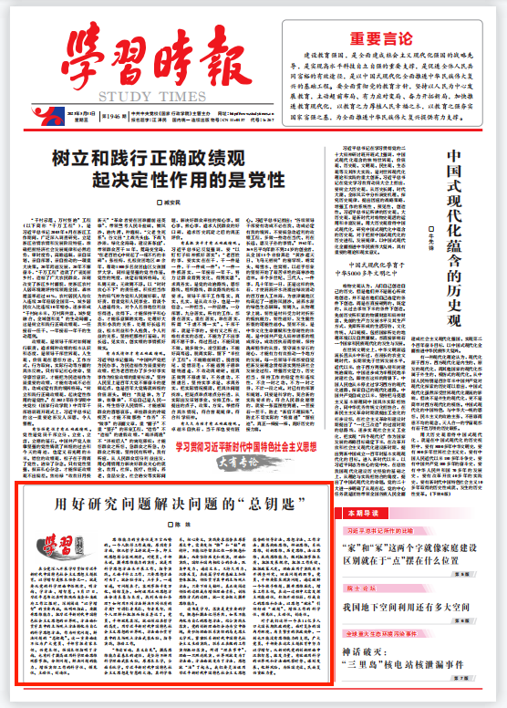 在全党深入开展学习贯彻习近平新时代中国特色社会主义思想主题教育,以学增智是根本任务之一,就是要从党的科学理论中悟规律、明方向、学方法、增智慧。5月17日,习近平总书记在听取陕西省委和省政府工作汇报时,深刻阐述“以学增智”的重要内涵。他明确指出,要提升思维能力,把习近平新时代中国特色社会主义思想的世界观、方法论和贯穿其中的立场观点方法转化为自己的科学思想方法,作为研究问题、解决问题的“总钥匙”。这一重要论述不仅为广大党员、干部掌握看家本领、兴党本领、强国本领指明了方向,也有利于提高运用科学理论思维观察事物、分析问题、解决问题的能力,增强实际工作的科学性、预见性、主动性、创造性。