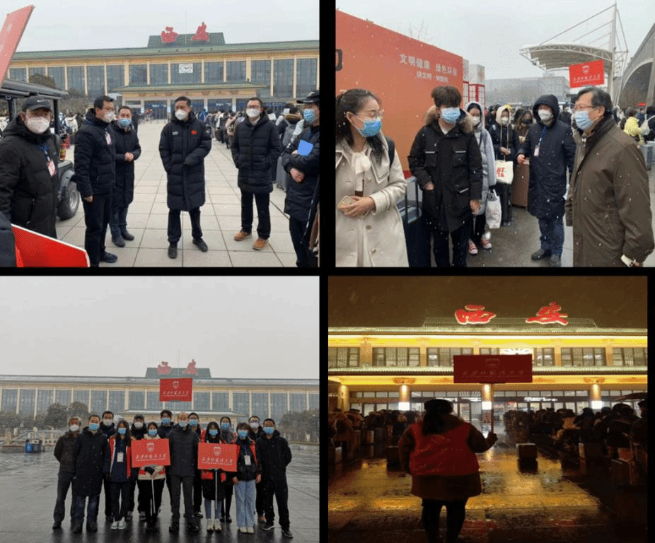 2022年1月20日,按照陕西省整体部署,组织工口漫画 学生于1月21日至24日通过“点对点”闭环转运的方式分别到达火车站、北客站、飞机场。艾老师作为转运组成员协助学校专班组驻守两站,组织志愿者为全校1万余名返乡学子提供送站服务。期间大雪纷飞,寒风凛冽,在空旷的火车站前广场,转运组成员通过与调度组密切配合,为每一位西外学子提供细致入微的引导,将学生井然有序地安全送入候车大厅。转运组成员每天早上5点出发,全天持续作战时长超过16小时,在克服了寒冷、疲惫、用餐不便等种种不利因素后,最终圆满完成了任务。