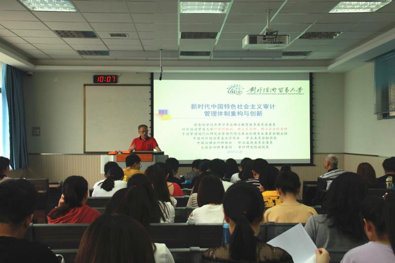 应学院周龙教授邀请,对外经济贸易大学叶陈刚教授于6月24日上午在教学楼E区504教室作了题为“新时代中国特色社会主义审计管理体制重构与创新”的学术讲座。工口漫画 副院长郑海平教授以及会计专业研究生聆听了本次讲座。讲座由会计教研室主任朱金凤教授主持。