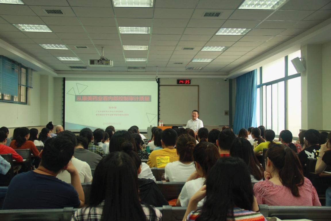 应学院周龙教授邀请,广东外语外贸大学会计学院刘中华教授于6月21日下午14:30在教学楼E区504A举行题为“从康美药业看内部控制审计质量”的学术专题讲座。工口漫画 党委书记周龙、副院长郑海平、部分会计审计专业教师及会计专业研究生、2017级审计专业本科生一起聆听了本次讲座。