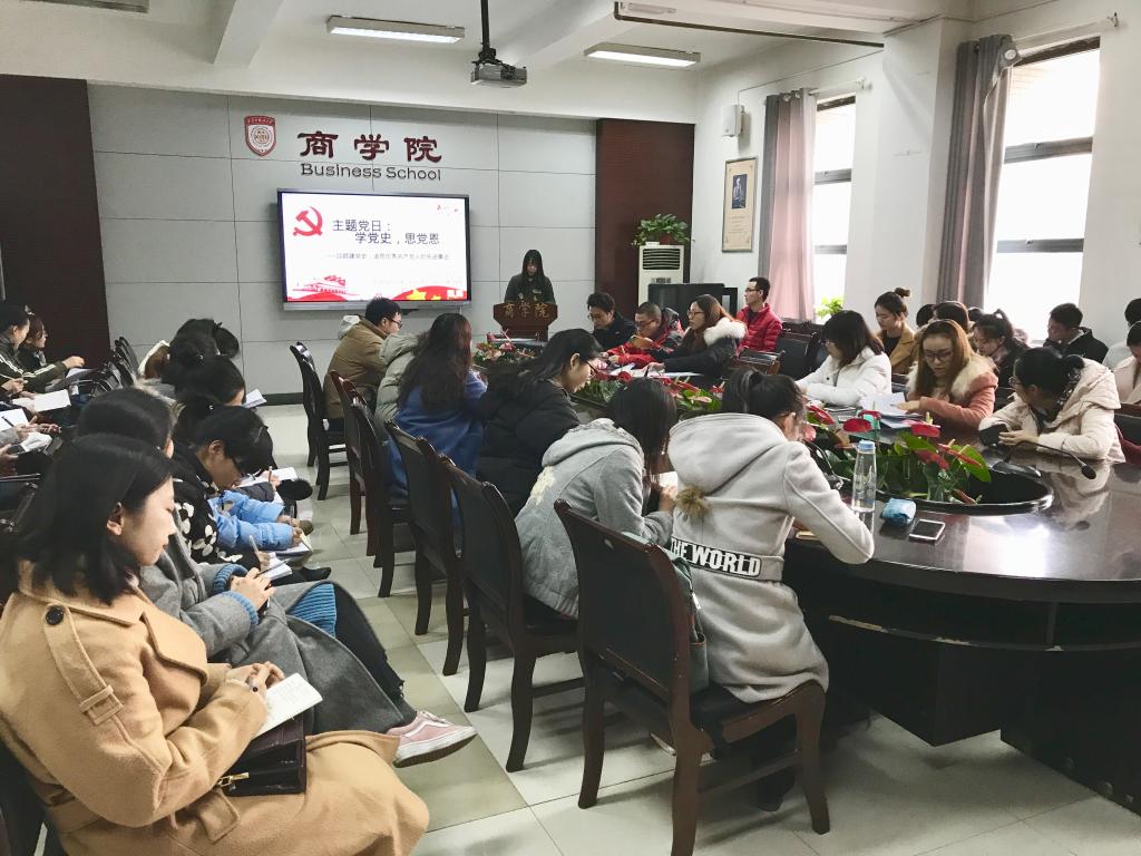随后,党员代表党静静同学为大家再次讲解中国共产党的发展历程;姜乐同学为大家讲述了戴安澜、成本华以及丁晓兵三位共产党人为党和人民无私奉献的故事,感人至深。之后,党员同志们就党史以及优秀共产党人的先进事迹发表自己的感想,大家纷纷表示深受感触,要积极向优秀共产党员学习。