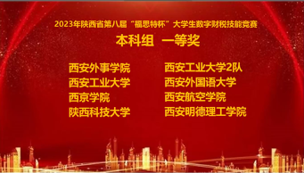2023年11月11日,陕西省第八届“福思特杯”大学生数字财税技能竞赛决赛落下帷幕,代表我校参赛的两支队伍分别荣获本科组、研究生组一等奖。