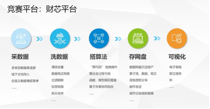 在模型搭建与数据计算环节,需要完成数据模型设计。利用官方提供的“财芯平台”算法中心,搭建算子流,围绕数据价值链完成数据采集、数据清洗、数据计算等步骤。在数据可视化呈现环节,需要利用“财芯平台”可视化中心,设计具有一定业务指导性的可视化大屏,准确表达分析内容与结果。