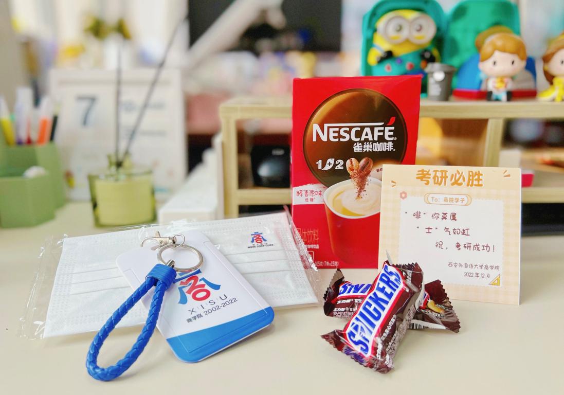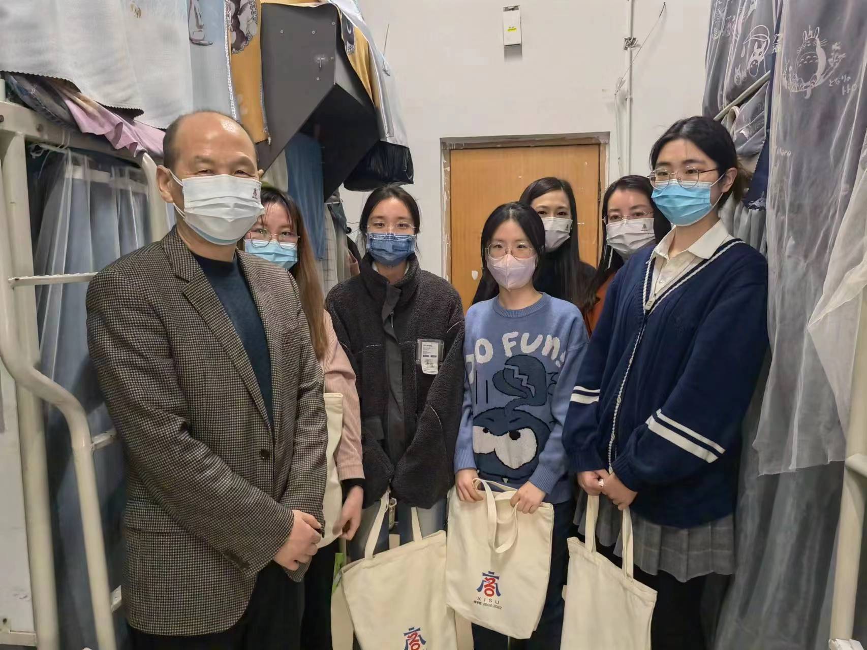 座谈会现场,王强对备考研究生的学生表达了关心和问候,并向他们送上工口漫画 “啡你莫属·士气如虹”的考研加油包及20周年院庆纪念品,同时向大家寄予了美好祝福和殷切希望。会后,王强深入考研学生宿舍,亲切慰问考研学生,叮嘱学生劳逸结合,放松备考,并对考研学生送上殷切祝福。