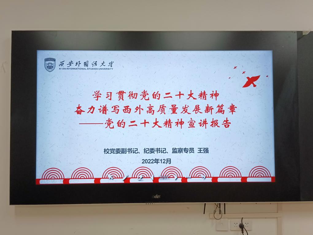 首先,王强围绕党的二十大精神为参会师生讲授题为“学习贯彻党的二十大精神·奋力谱写西外高质量发展新篇章”的专题思政课。他从党的二十大的主题和主要成果、过去5年的工作和新时代10年的伟大变革、马克思主义中国化时代化、中国式现代化、全面建设社会主义现代化国家的目标任务、坚持党的全面领导、全面从严治党和应对风险挑战等七个方面对党的二十大精神作了深入阐释,同时结合新时期西外的发展建设,号召与会师生进一步深刻领会党的二十大精神,把学习贯彻党的二十大精神同立德树人、科研创新、社会服务等中心工作紧密结合,坚持知行合一,强化担当作为,扎实推进党的二十大精神在广大师生中入脑入心,走深走实。