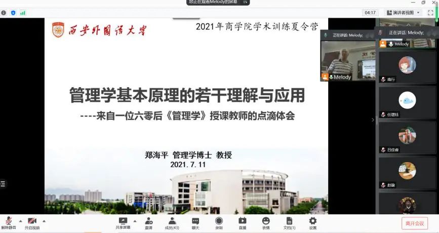 2021年7月11日下午,工口漫画 郑海平教授受邀为会计学、企业管理两个学位点的夏令营营员作《管理学基本原理的若干理解和应用》的专题讲座。