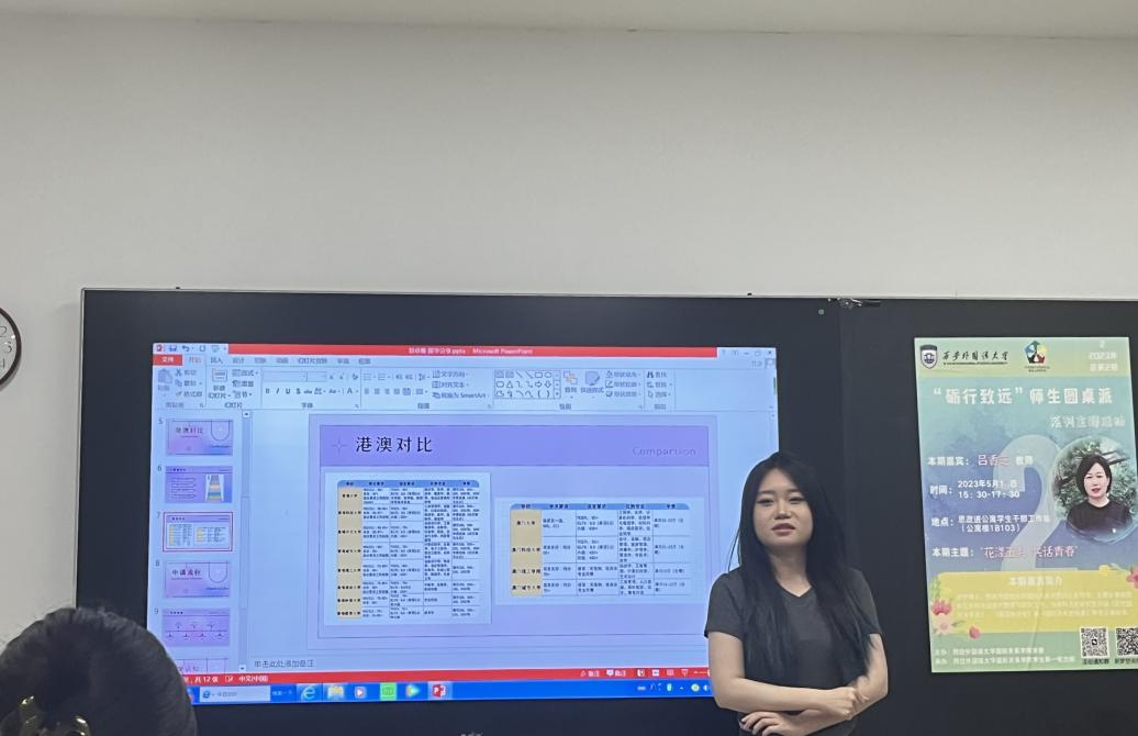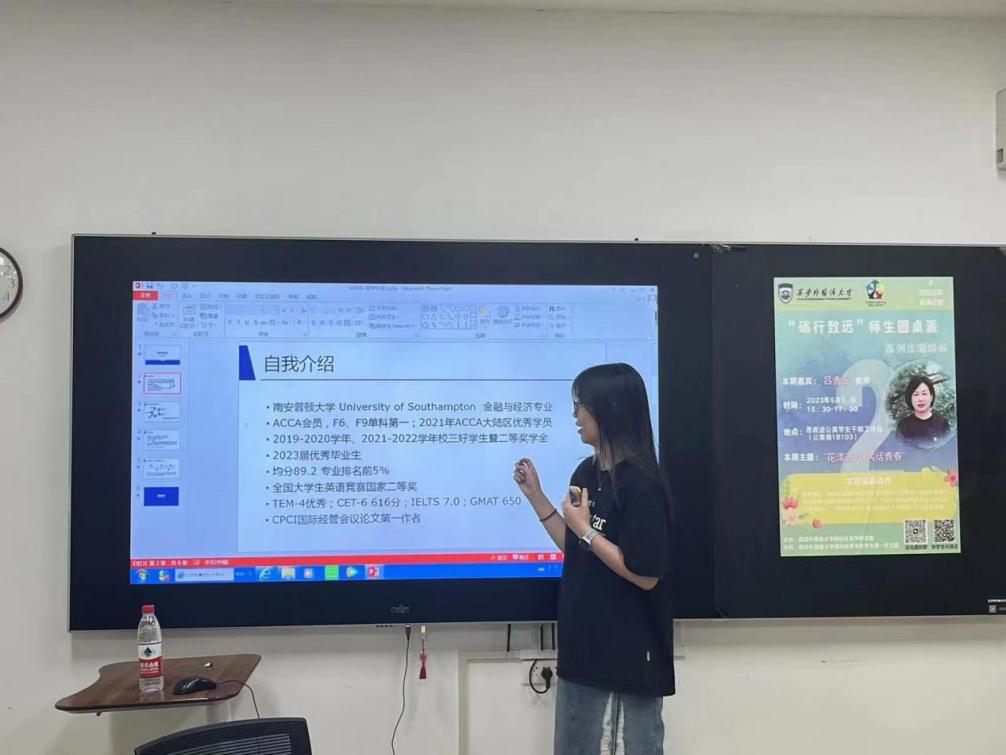 考研分享会中,2017级校友李咪咪、2019级毕业生杨育晨、詹馨怡分别围绕备考资料、专业选择、择校经验、心态养成等方面,详细洞悉当下考研形势,分享自己上岸成功的心路历程、考研经验和注意事项,勉励同学们要以积极良好的心态面对考研。现场答疑环节,同学们纷纷提出自己在考研方面的疑虑,三位考研上岸同学热心解惑,对大二的学弟学妹提出宝贵的学习建议,鼓励同学们合理规划学习时间,专注自身,积极迎接各类挑战。