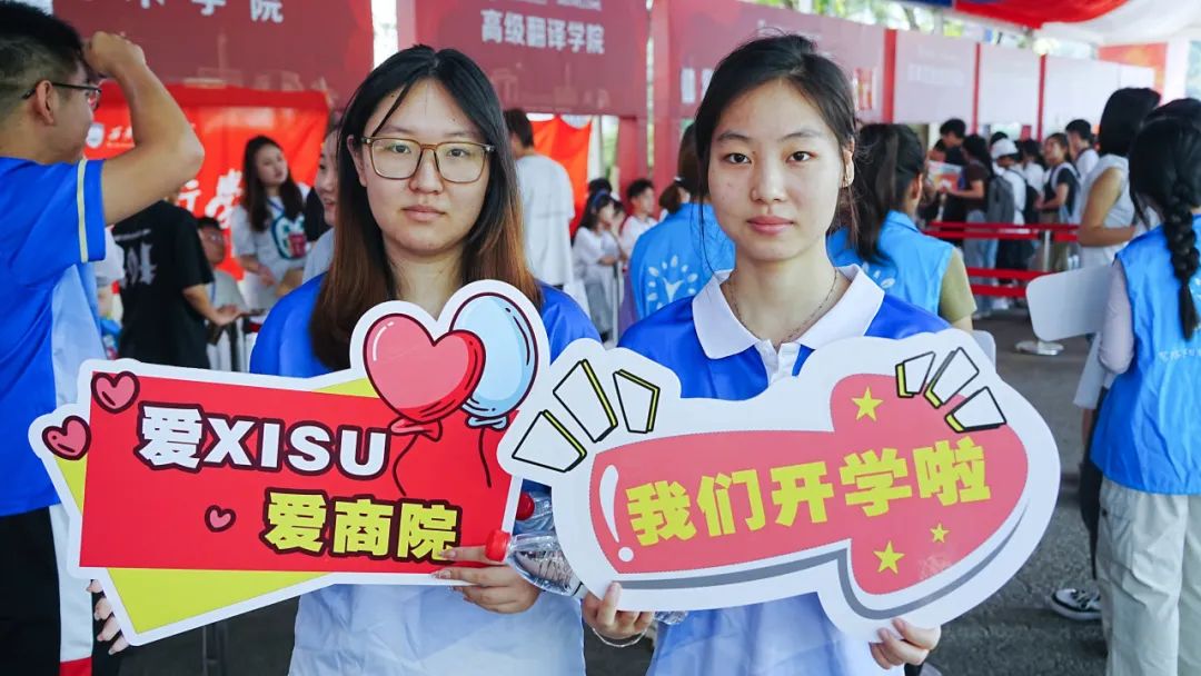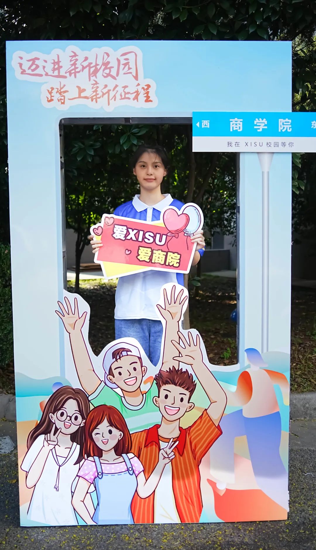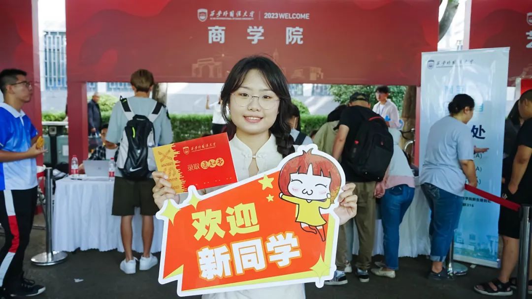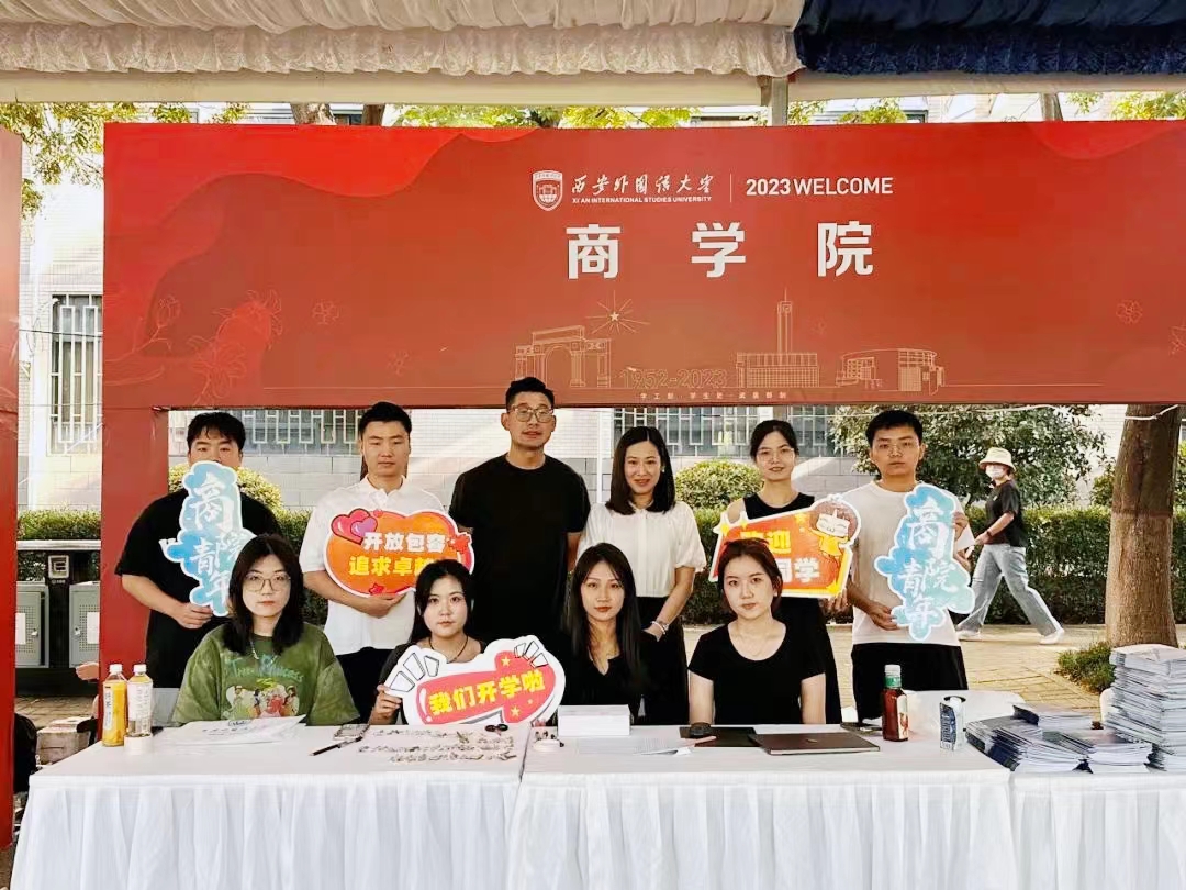 相信同学们在进校园时见到了学长学姐所穿的蓝色上衣,这就是传说中的"商院蓝"。他们用自己的热情传递着西外温度,表达自己对学弟学妹们的热烈欢迎,展示商院人的精神面貌。
