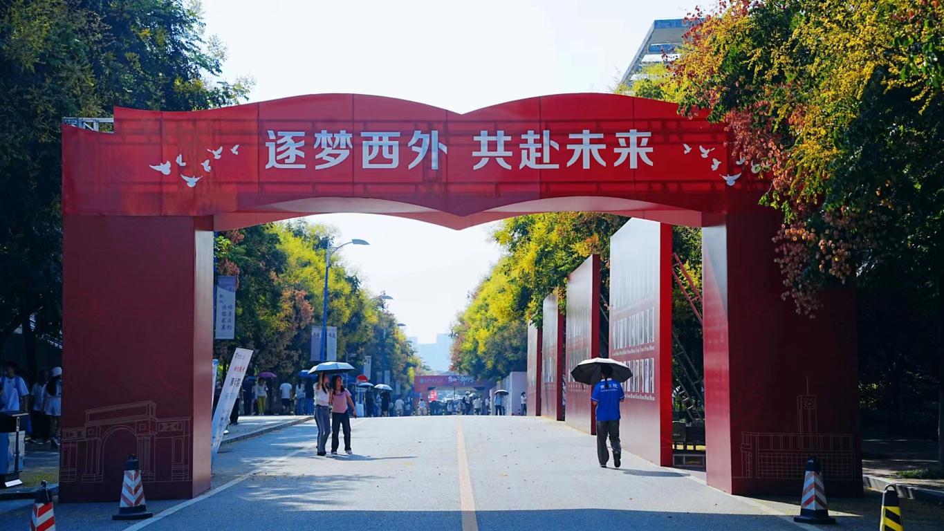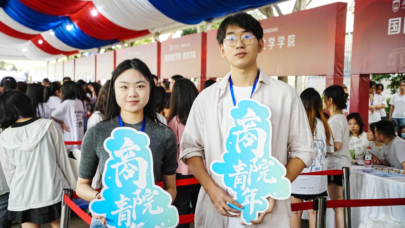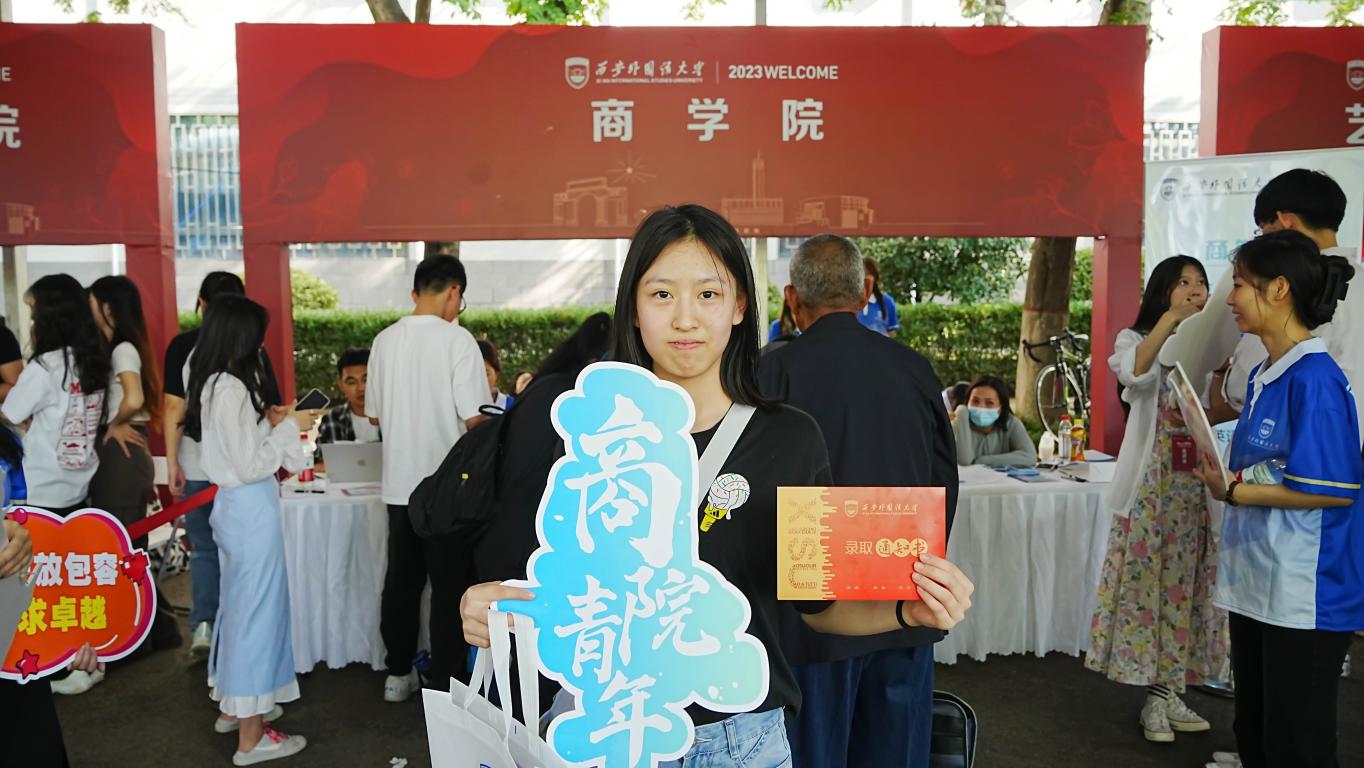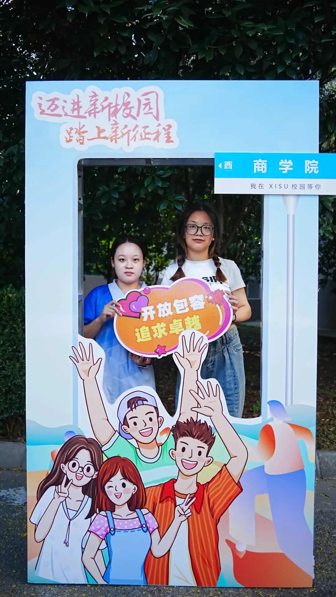 相信同学们在进校园时见到了学长学姐所穿的蓝色上衣,这就是传说中的"商院蓝"。他们用自己的热情传递着西外温度,表达自己对学弟学妹们的热烈欢迎,展示商院人的精神面貌。