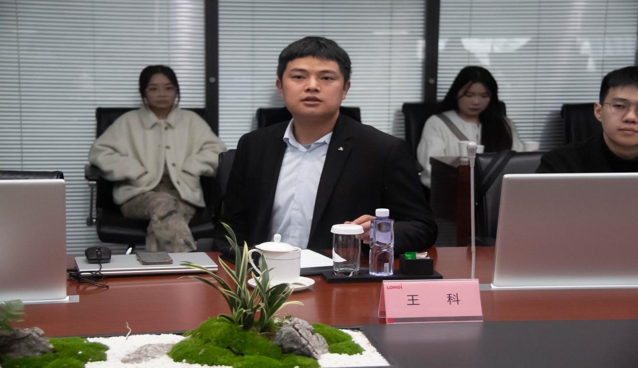 座谈交流环节,隆基校企合作负责人向师生介绍了光伏产业的发展前景和公司在光伏能源方面的业务布局以及全球布局,谈到隆基的技术创新与品牌故事,从各方面阐释公司可持续发展的理念。此外,负责人还分享了公司目前对人才的培养计划,分享了自己对职业规划以及求职的看法和经验,同学们受益匪浅。