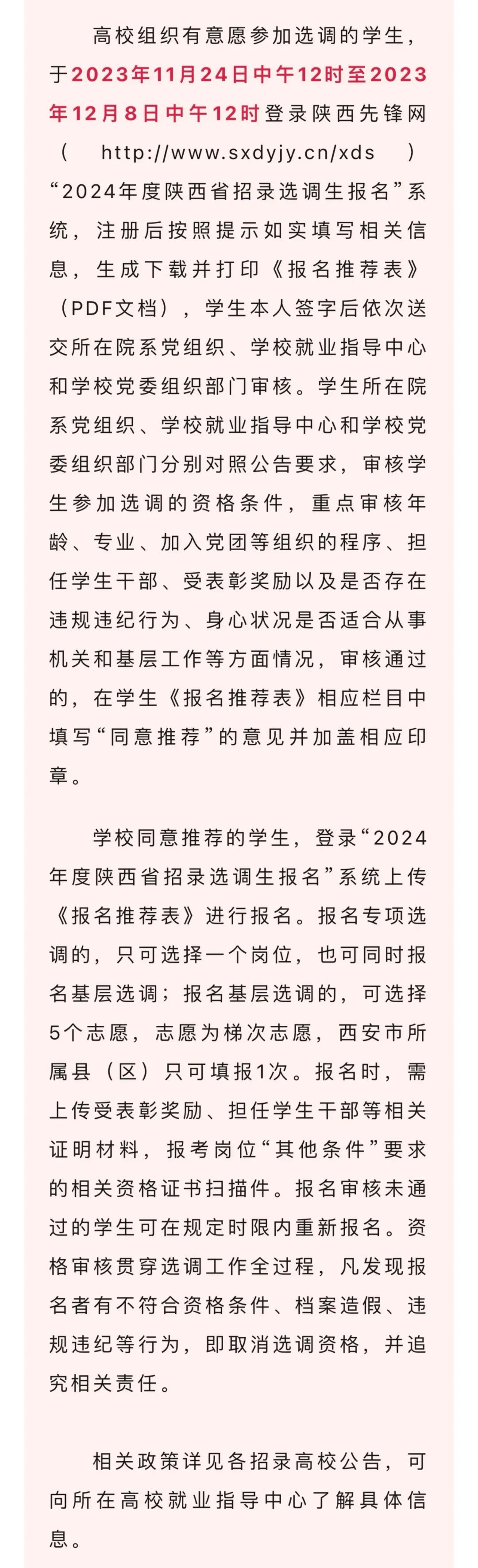 各项政策以官网为准,未尽事宜请登录陕西先锋网//www.sxdyjy.cn/查询,初心如磐,使命在肩,扎根基层、砥砺奋斗,用热情和实干绽放出属于自己的时代芳华!(图文:来源于网络 审核:张晶)