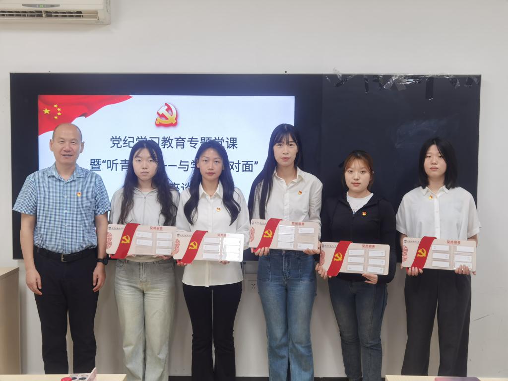 王强结合自身学习体会,从党纪学习教育是什么、学什么、怎么学三个方面,为学生讲授“学纪 知纪 明纪 守纪,做挺膺担当的时代新人”专题党课。他强调,作为学生党员要深刻认识加强党的纪律建设的持续性、重要性,一是要加强理论素养,在学党纪中明方向,不断筑牢信仰之基;二是要加强党性修养,在学党纪中强筋骨,真正发挥先锋作用,积极投身各类活动;三是要密切联系同学,在学党纪中修初心,时刻牢记党的宗旨,想同学们之所想,解同学们之所困,切实发挥传帮带的示范引领作用。他还通过分享警示案例,使在场师生明白作为党员应当自省、慎独、克己,在实际行动中实现对纪律的深刻认识和遵守纪律的高度自觉。