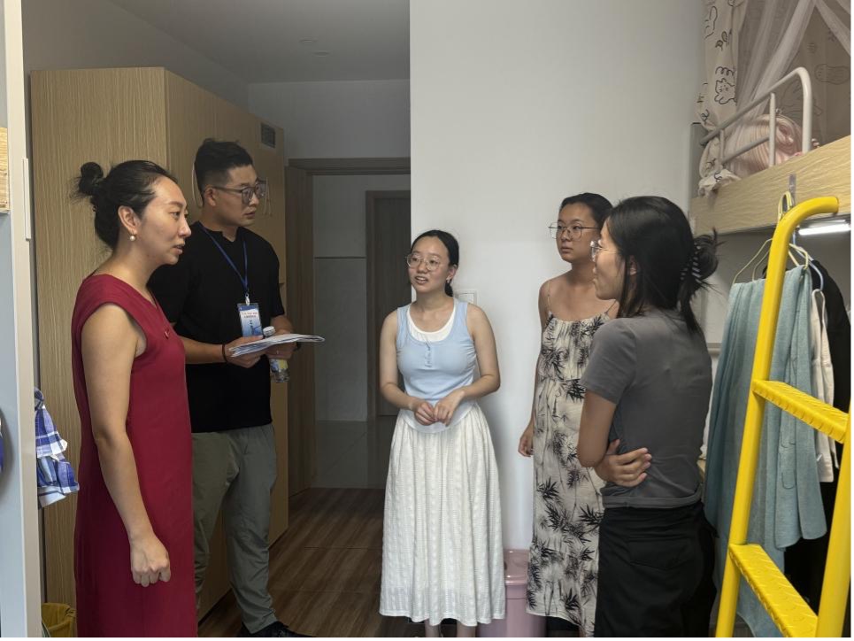 为了解新生入校适应情况,传递校院的关怀与期望,9月2日,工口漫画 院长耿紫珍、党委书记邓雯、党委副书记兼副院长张晶、副院长朱金凤、薛晋洁与本科及研究生新生辅导员一同走访2024级新生宿舍。