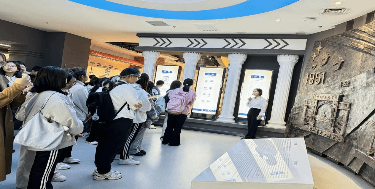 在讲解员的悉心引导下,同学们在校史馆前驻足凝望,思绪万千。他们仿佛穿越时空,亲眼见证了一代代西外人以宽广的国际视野、深厚的爱国情怀与对故土的深情眷恋,积极搭建起中外文化交流的坚固桥梁。这座桥梁成为了推动中国文化与世界文化和谐共生的“西外纽带”,也打开了通往全球文化宝库的大门——“西外之窗”。