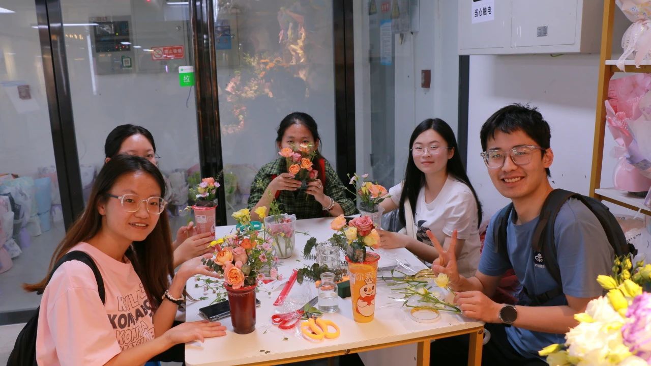 此次实践活动以“生活即课堂・劳动筑梦想”为核心理念,精心设计“花艺、烘焙、烹饪”三大特色实践项目,构建起“兴趣挖掘-技能培养-实践赋能”的立体化劳动教育场景。在花卉艺术实践基地,同学们手持花泥盘,在园艺师指导下识别玫瑰、洋桔梗等花材特性,学习日常插花的色彩搭配与层次构图。同学们在修剪枝叶、搭配造型中感受植物生长规律,将日常兴趣转化为审美创造。