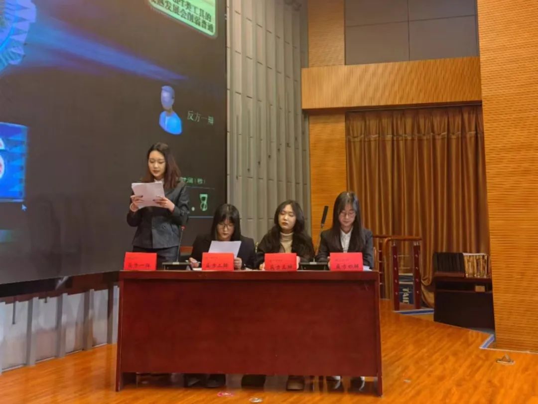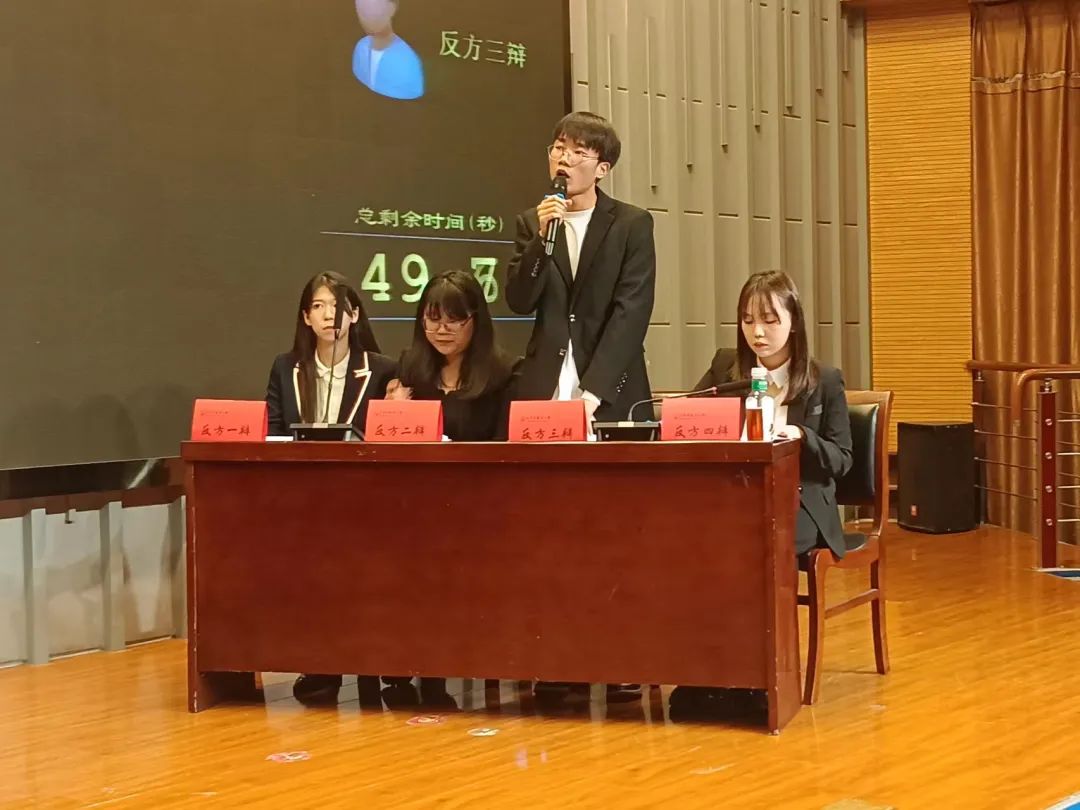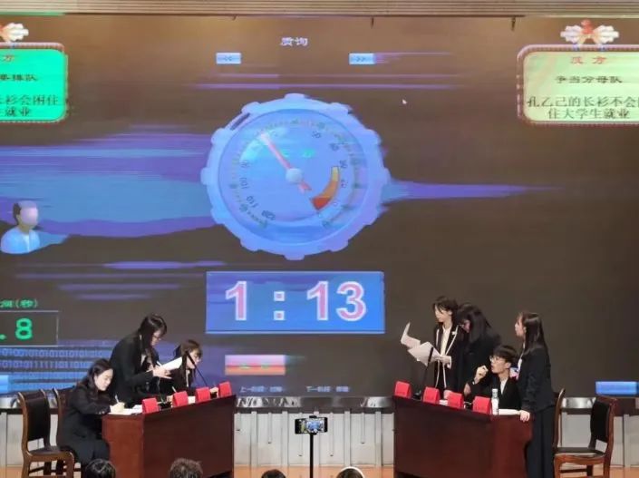 他们的辩题是孔乙己的长衫会不会困住大学生就业,这场比赛可谓是“神仙打架”,双方辩手都慷慨激昂,妙语连珠,正反双方观点都强而有力,赢得了评委老师和观众的阵阵掌声!