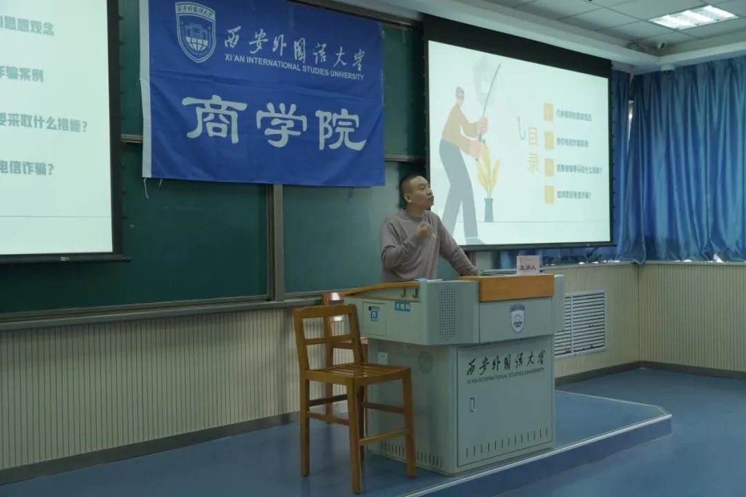 讲座伊始,王雄警官对什么是电信网络诈骗及校园常见诈骗类型进行了深入剖析。他指出,校园网络诈骗常见的有刷单返利、冒充公检法、购物诈骗、中奖返利、假冒身份等八种类型。这些诈骗手段往往利用同学们天真、涉世不深的心理,让同学们在意识松懈时上当受骗。