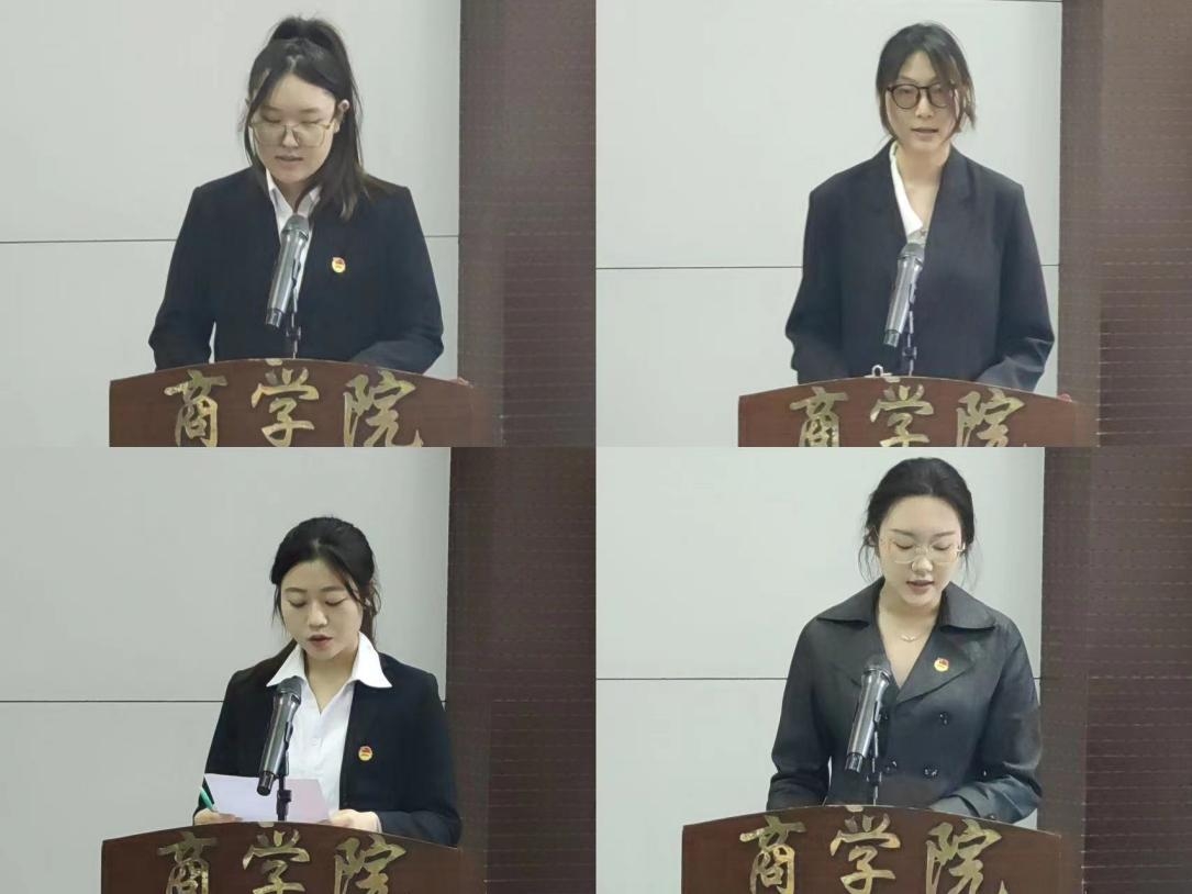 正式会议的最后,学生代表们就提案展开了深入讨论,梁若青、张嘉桐、邓若璠和张惠雲同学依次进行发言,从实习实践、心理健康、校园建设、就业帮扶等方面就提案进行了详细讲解供大会审议。
