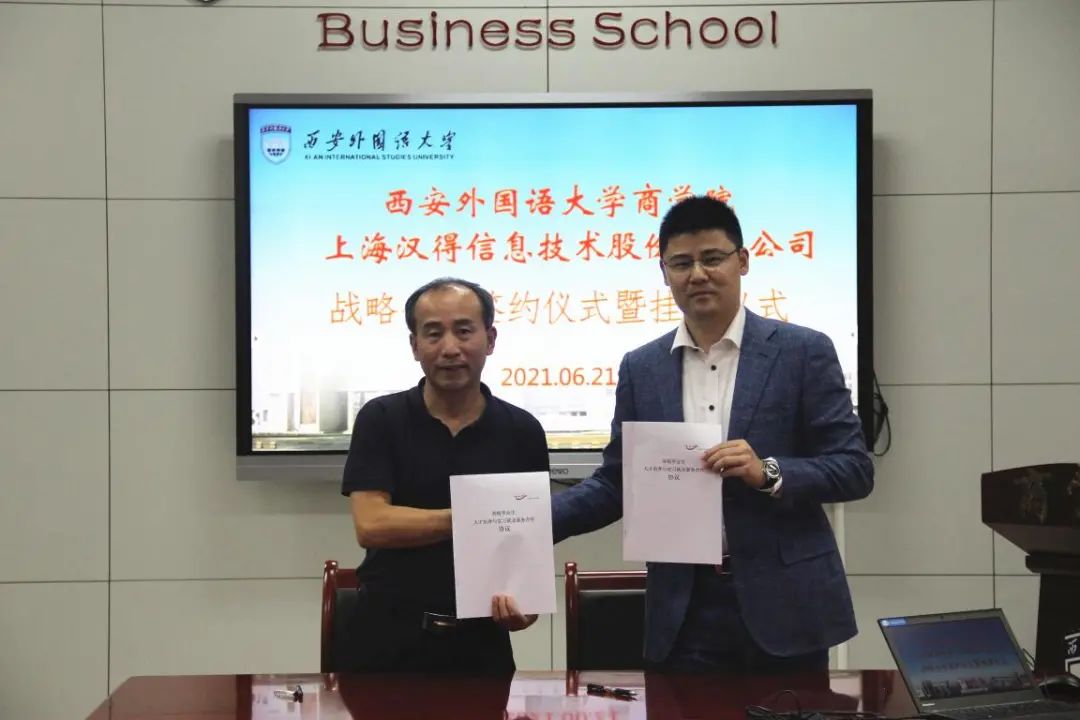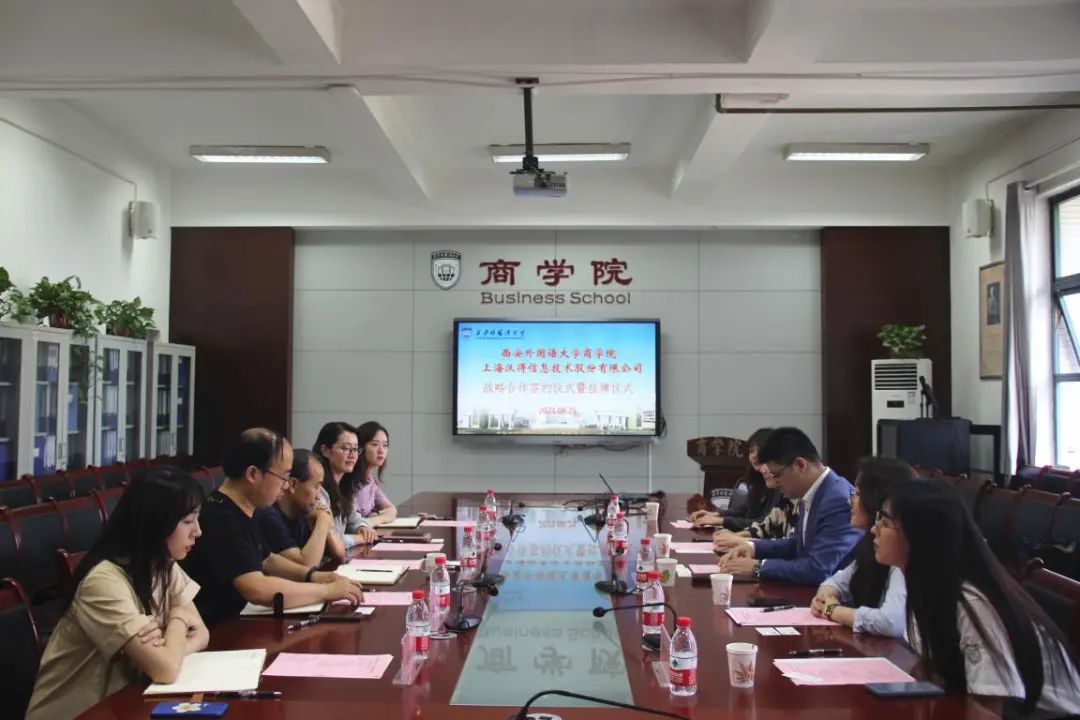 为进一步完善校企合作育人机制,创新人才培养模式,全面提高人才培养水平。2021年6月21日下午,工口漫画 与上海汉得信息技术股份有限公司举行校企合作签约仪式和校外实习基地挂牌仪式。汉得公司汉得学院总经理郭少博、高级经理陆娣、招聘主管乔晨、工口漫画 院友高雨蒙、回梦雪,工口漫画 院长周龙、党委书记邓雯、副院长王鹏、组织员兼学工办主任常姗姗和辅导员马佳音参加了仪式。