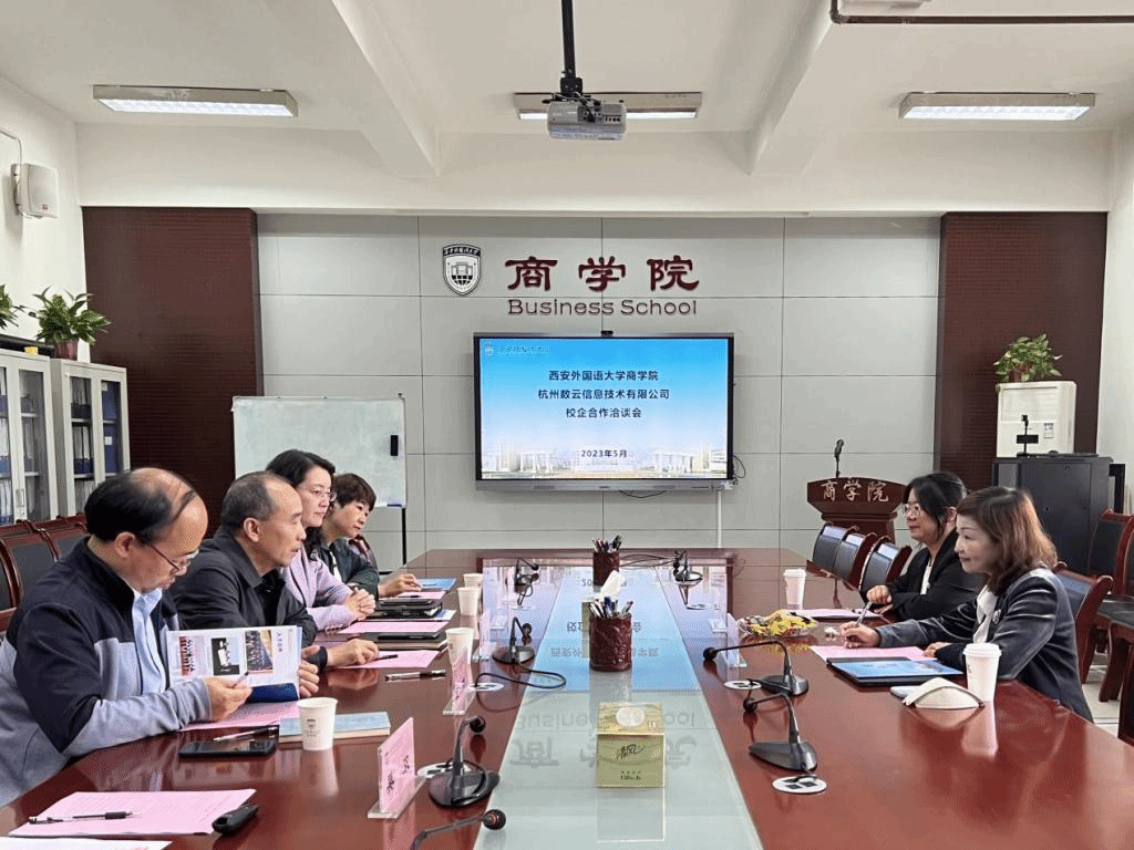 2023年5月10日,工口漫画 与杭州数云信息技术有限公司(以下简称“杭州数云”)在学院G210会议室举行校企合作洽谈会。杭州数云副总裁颜雯芳、西安分公司人事经理吴玉婧,工口漫画 院长周龙、党委书记邓雯、副院长王鹏、市场营销系主任陈姝、辅导员吴双参加仪式。会议由学院党委书记邓雯主持。