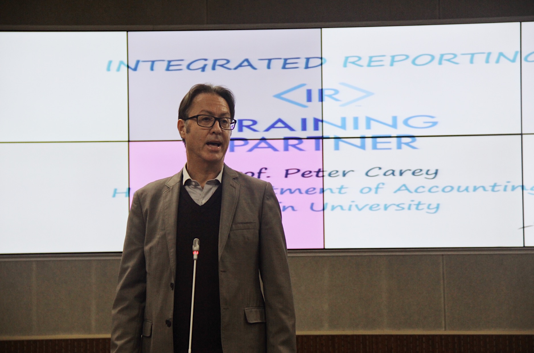 讲座中,Peter教授首先介绍了综合报告目前的全球发展状况。据悉,截止2018年全世界范围内多个国家和地区都已经采用了综合报告的模式。我国财政部也已经加入国际综合报告理事会,并将综合报告发展列入五年计划中。他强调,综合报告是关于组织战略决策、公司治理、绩效考核和发展前景等多方面的综合讨论,能够通过更加综合的思维产生商业利益。因此公司和组织应当量身定制符合自身实际情况的综合报告。