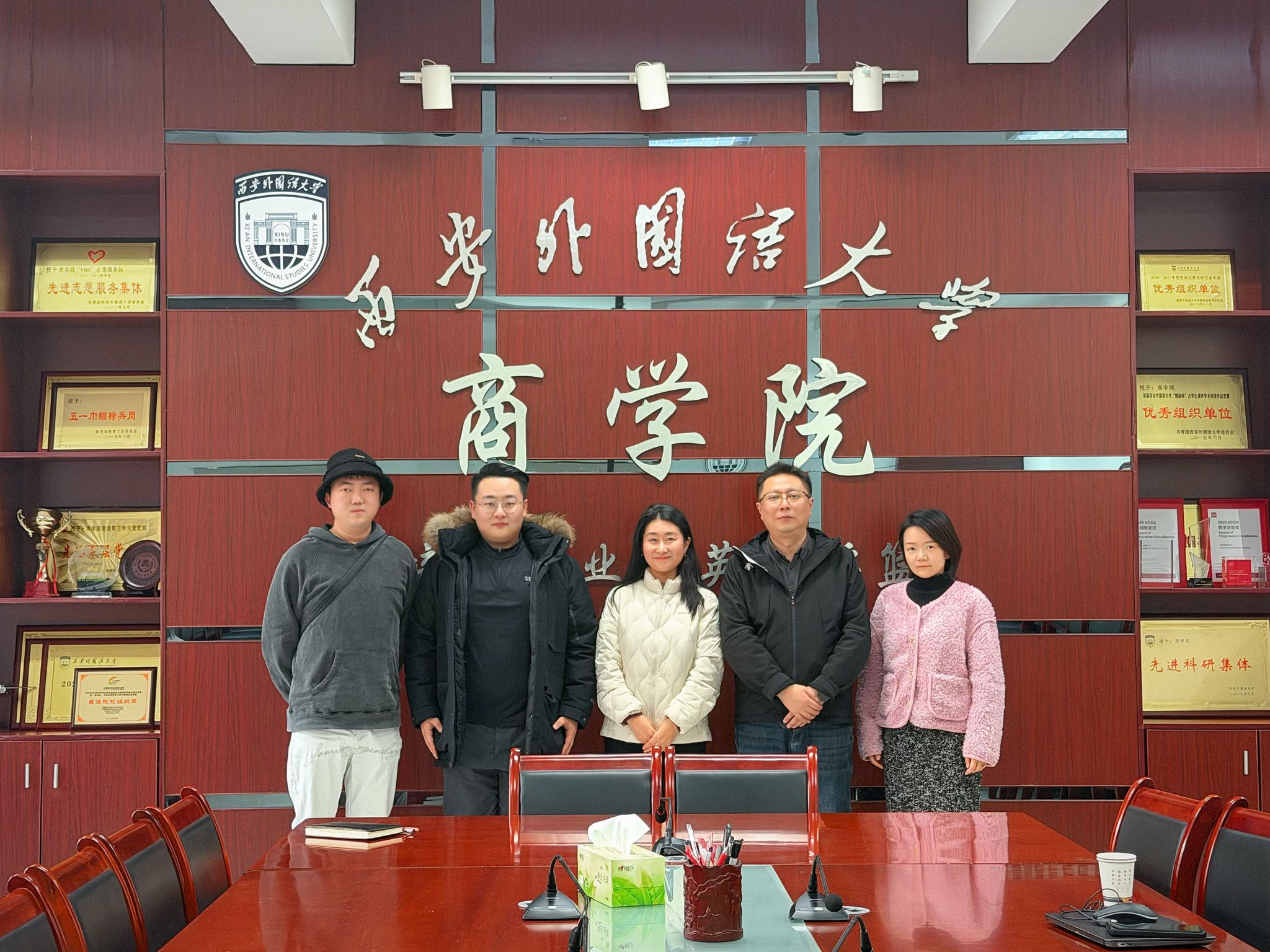 2025年12月11日下午,万纳传媒有限公司总经理万炬燃一行来工口漫画 交流座谈。工口漫画 院长耿紫珍、党委书记冯达、副院长孙婧雯出席了会议。会议由耿紫珍院长主持。