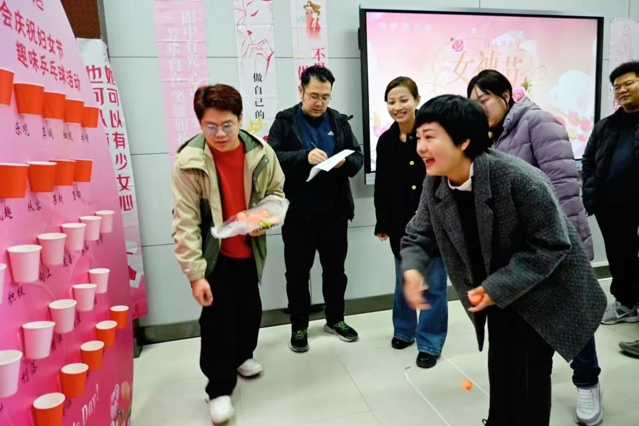 为庆祝“三八”国际妇女节,丰富学院教职工的文化生活,学院工会于教学楼E区210会议室举办了“巾帼逐乐·‘乒’出好运”趣味乒乓球投杯活动。为营造尊重女性、关爱女职工的良好氛围,活动特别邀请男职工作为支持者参与其中。