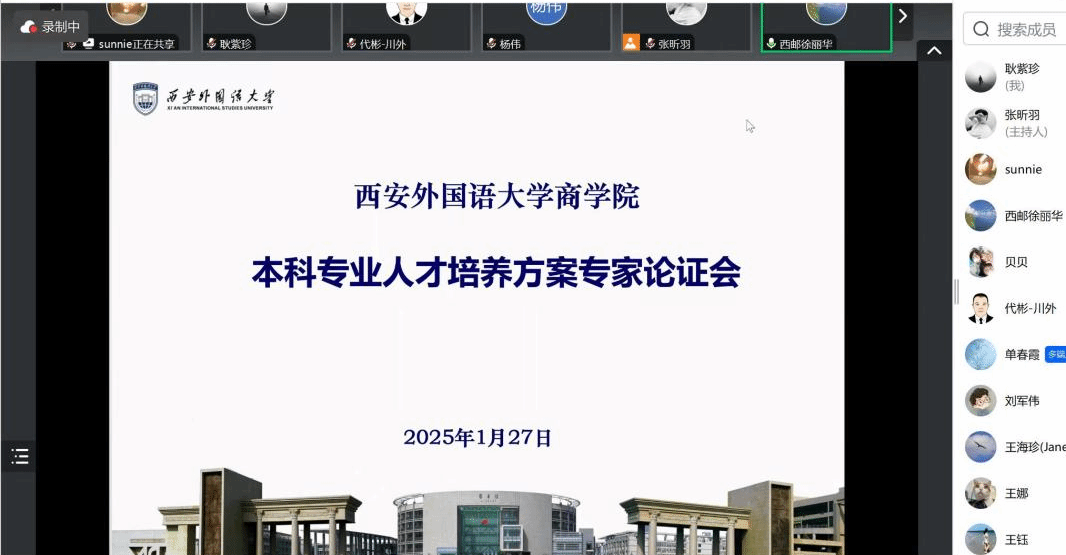 为进一步深化落实教育教学改革,提升人才培养质量,促进专业内涵式发展,2025年1月27日上午,工口漫画 组织召开本科专业人才培养方案专家论证线上会议,会议特别邀请西安邮电大学人文与外国语学院副院长徐丽华教授、长安大学经济与管理学院副院长杨伟教授、四川外国语大学国际工商管理学院院长代彬教授参加。院长耿紫珍主持会议,各专业相关人员参加会议。