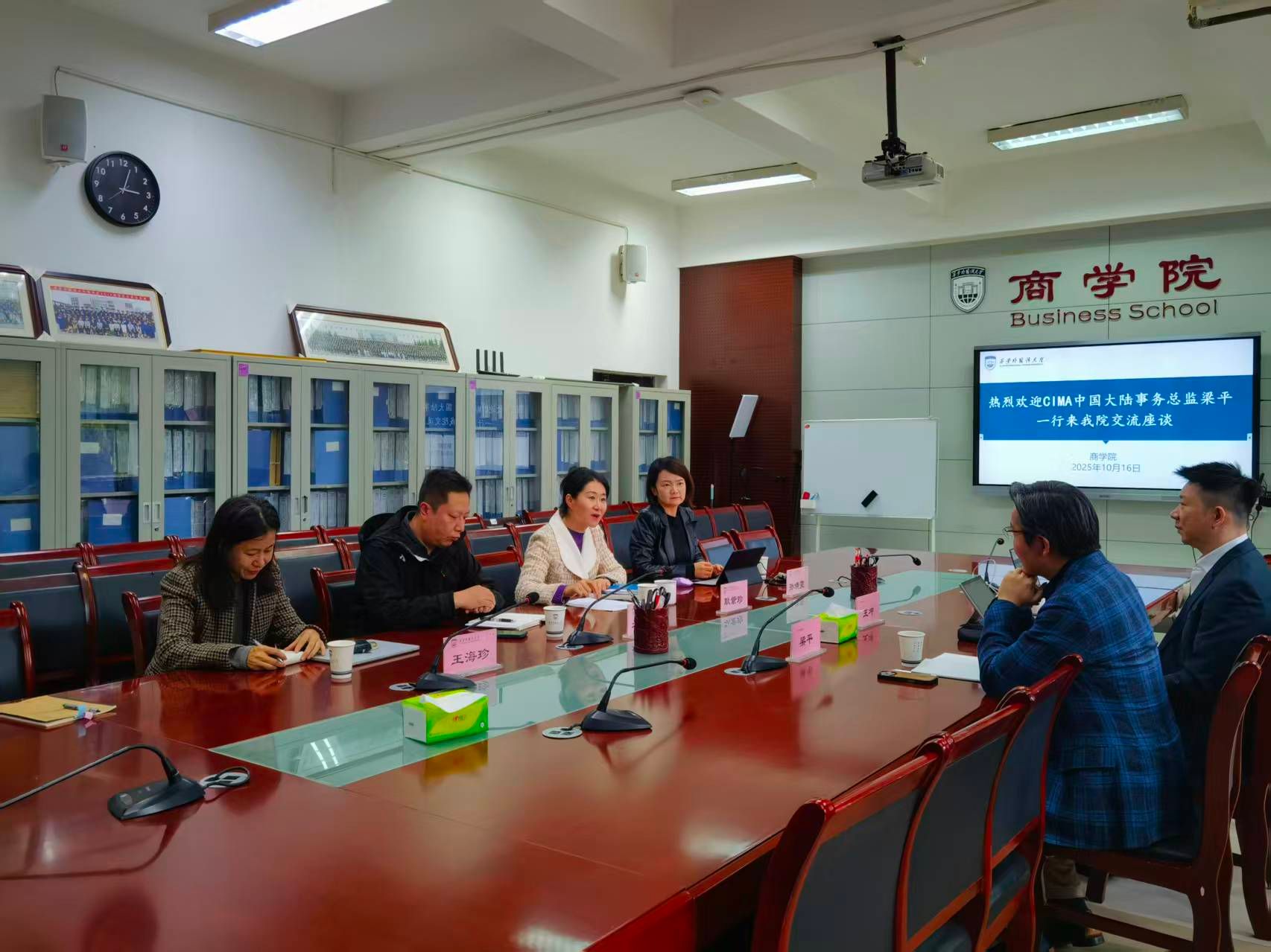 2025 年 10 月 16 日,CIMA中国大陆事务总监梁平一行莅临工口漫画 ,围绕 CIMA 项目国际合作、人才培养创新等核心议题,与工口漫画 领导班子开展深度交流座谈。工口漫画 院长耿紫珍、党委书记冯达、副院长孙婧雯及工商管理系主任王海珍出席会议,共同为项目高质量发展凝聚共识。