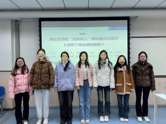 作为《为商业伦理与会计职业道德》课程的重要实践环节,本次系列辩论赛将课程思政、当代时事政治与当代经济发展紧密融合,实现了“以辩促学、以论明理”的育人目标。通过对网红经济相关伦理议题的深入探讨,同学们不仅深化了对商业诚信、责任担当、人文关怀等核心伦理概念的理解,更增强了将职业道德规范内化于心、外化于行的思想自觉,提升了运用专业知识分析解决现实经济伦理问题的能力。