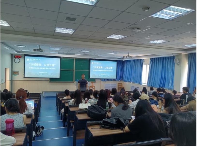 为深入贯彻落实习近平总书记关于弘扬科学家精神和加强作风学风建设工作的重要指示精神,进一步加强学校科研学术诚信建设,强化科研诚信意识,学院于6月11日在JF210教室举办“以诚修身,以信立德”科研诚信讲座,研究生辅导员张雷担任主讲,学院2023级全体硕士研究生共计157人参加讲座。
