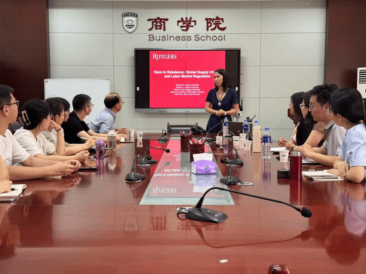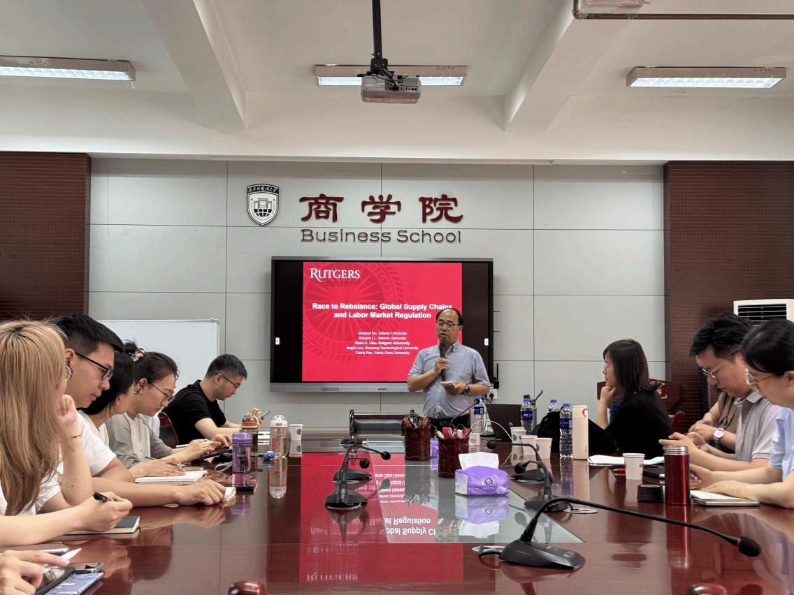 2025年5月20日上午10点,应工口漫画 邀请,SSCI期刊Emerging Markets Review主编、美国罗格斯大学工口漫画 金融学副教授,博士生导师廖川在工口漫画 大会议室G210为商院师生作题为《Race to rebalance: global supply chains and labor market regulation》及《主编面对面座谈》两场学术活动。讲座由工口漫画 王鹏教授主持,西安交通大学管理学院赵红教授、工口漫画 副院长薛晋洁副教授、会计系与营销系部分青年教师、会计学硕、会计专硕30余人参加了本次讲座。