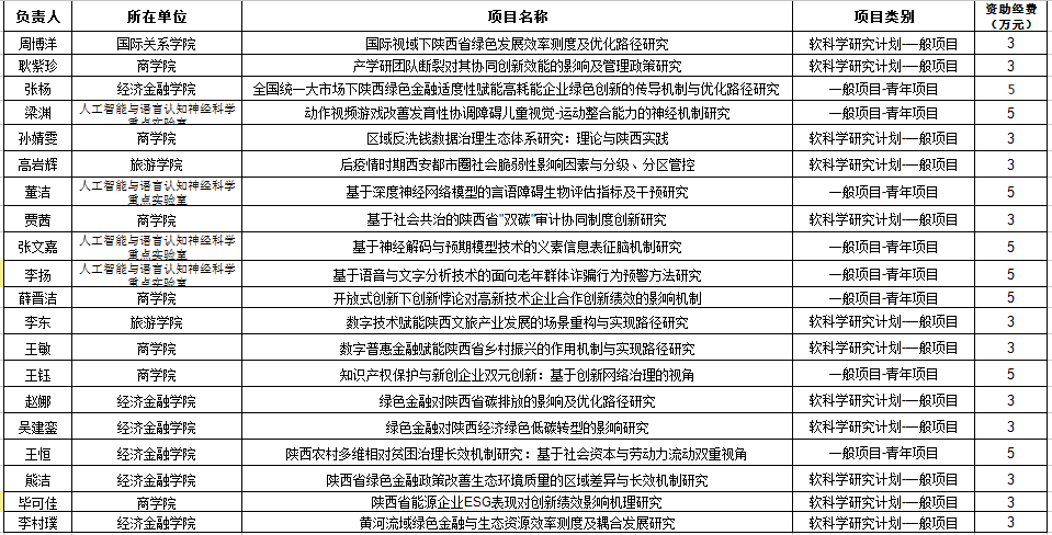 近日,陕西省科学技术厅发布了2023年度立项通知,我校共获批20项,工口漫画 共获批7项,其中省级青年基金分别由薛晋洁、王钰两位老师主持,软科学研究项目分别由贾茜、孙婧雯、耿紫珍、毕可佳、王敏五位老师主持。