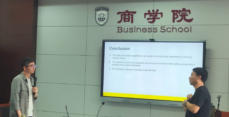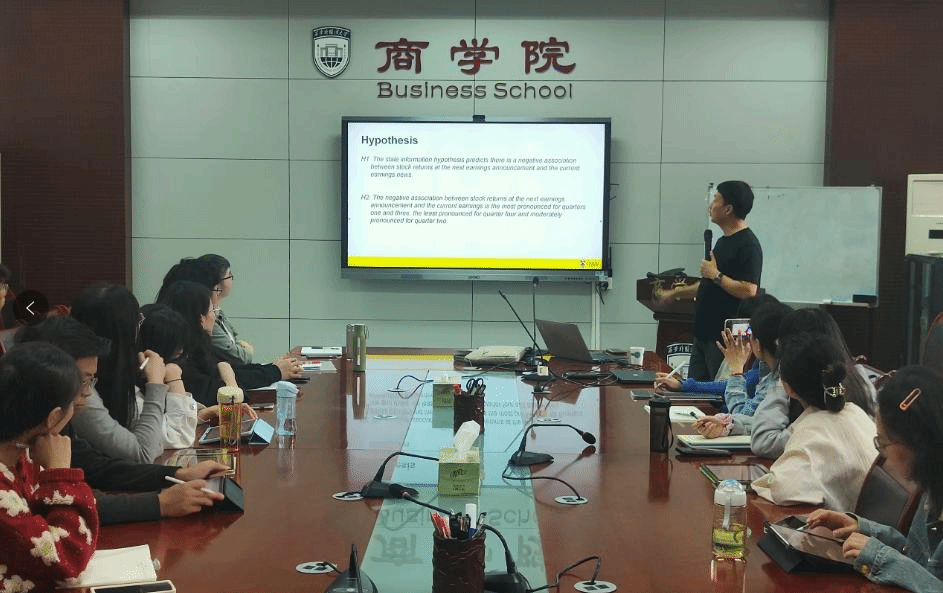 本次讲座以论文“Stale Earnings Information and Share Price Reversals: Evidence from China(陈旧盈余信息与股价反转——来自中国的证据)”为切入点,围绕“国际期刊论文发表和青年教师职业发展”这一主题展开。首先,李超老师在回顾盈余公告后漂移异象的基础上,提出了论文的研究主题,即“陈旧盈余信息假说在多大程度上可以解释投资者如何将盈余信息融入股价”,并开门见山地介绍了论文的主要发现和研究结论,即:“陈旧信息假说可以解释中国股市股票价格对盈余信息的反应,股价反转现象在拥有更多陈旧盈余信息的公司中更明显,且股价对第一季度盈余信息的反转最为强烈”。然后,李超老师就本论文的研究方案设计、样本选择和数据来源,以及实证分析的过程和结果进行了详细介绍。