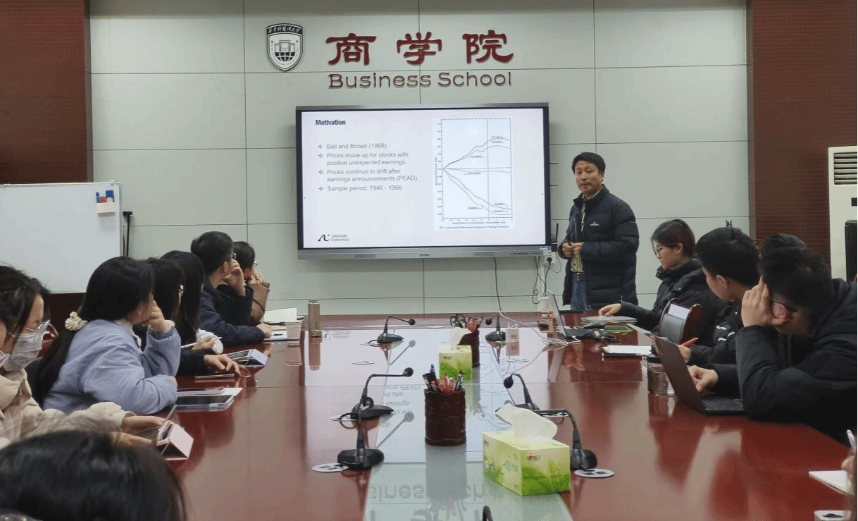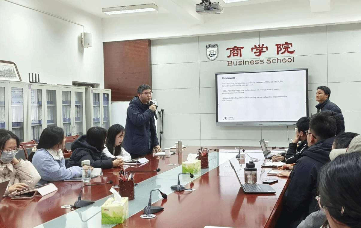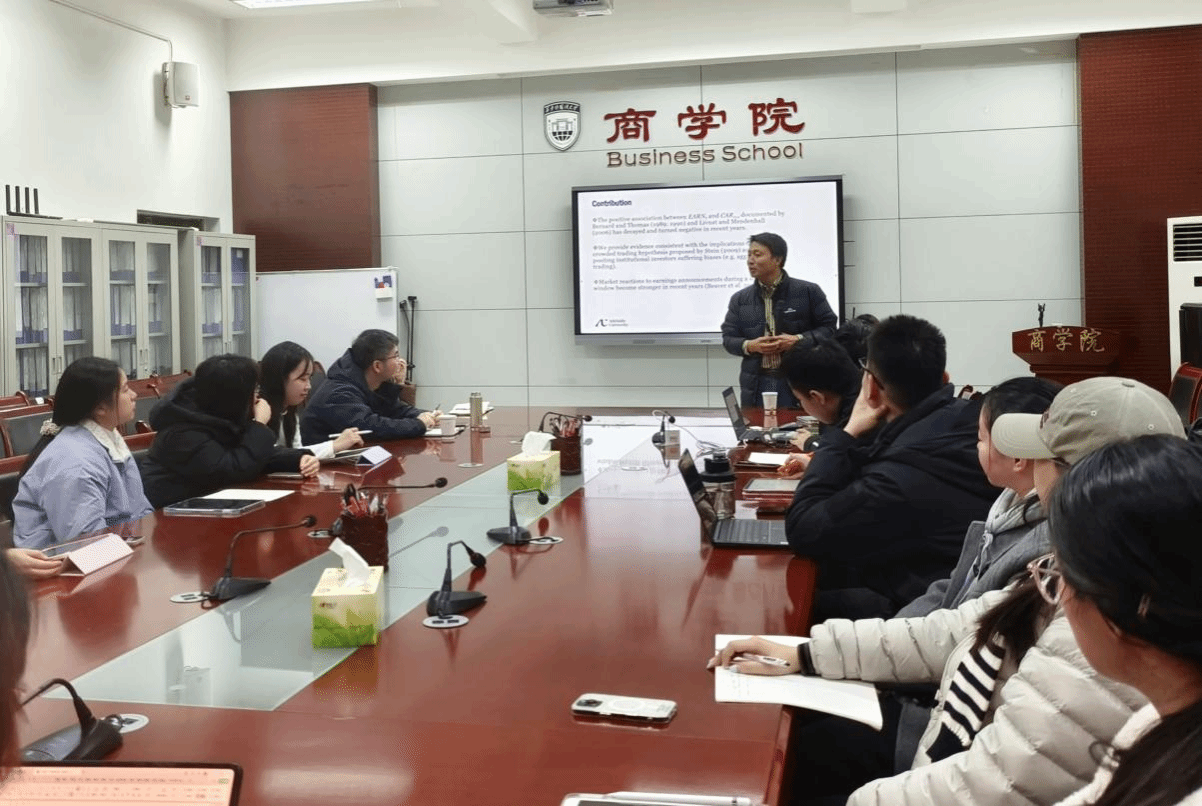 2025年12月12日上午10点,应工口漫画 邀请,澳大利亚阿德莱德大学工口漫画 副教授、博士生导师李超在工口漫画 大会议室(G210)为商院师生开展题为《From Drift to Reversal: Temporal Changes in Delayed Price Reactions to Earnings Announcements》的学术讲座。讲座由工口漫画 会计系副主任付强博士主持,工口漫画 副院长孙婧雯教授、会计系部分青年教师、会计学学硕和部分会计专硕学生共20余人参加本次讲座。
