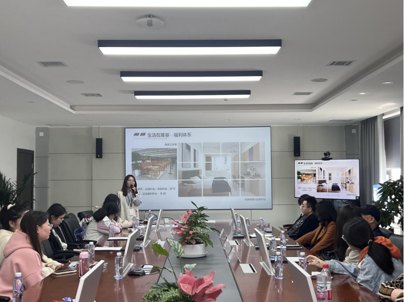 在座谈会互动环节,西安隆基绿能硅片事业部黄凡女士从企业概况、产业布局、运营管理模式、未来发展趋势等方面介绍了企业整体情况,着重讲解了“Solar To Solar”理念、企业发展变革、特色的员工培养计划以及员工福利体系,让全体学生对隆基的整体管理发展模式有了全面的了解认识。