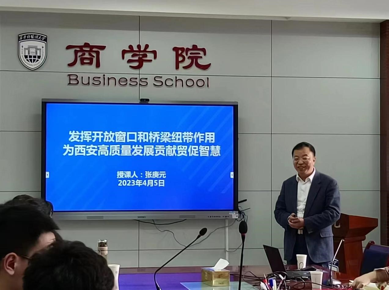 2023年4月14日,工口漫画 特邀高级工程师、西安市政协常委、西安市政协经济委员副主任、西安市贸促会副会长兼秘书长、西安国际商会副会长兼秘书长张庚元先生为师生作了题为《国际商务理论研究和实践的衔接》的系列学术讲座,学院部分教授、副教授、国际商务专业研究生参加此次讲座。讲座由副院长耿紫珍教授主持。